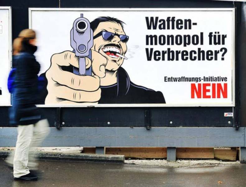 Gesichtet in Chambéry (Fr) am 28.4.11: die Vorlage zum SVP-Plakat der Waffenschutzinitiative vom 13. Februar 2011 ?
